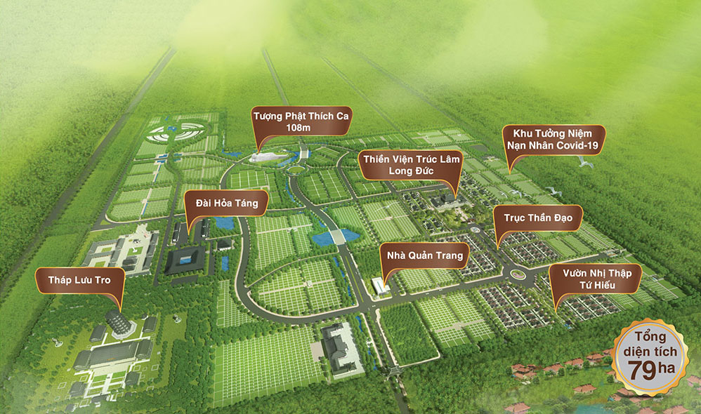 Không chỉ là nơi an nghỉ cuối cùng, Vĩnh Hằng Long Thành còn được kiến tạo như một công viên xanh với không gian yên tĩnh, hài hòa với thiên nhiên. Dự án cung cấp đầy đủ các loại hình huyệt mộ và dịch vụ tưởng niệm, mang lại sự an lành và tôn kính dành cho người đã khuất, đồng thời giúp gia đình có nơi đến viếng thăm trong không khí trang nghiêm và thanh bình.